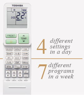 Experience year round comfort with a remote control that comes with a weekly timer feature that can be programmed according to your need.